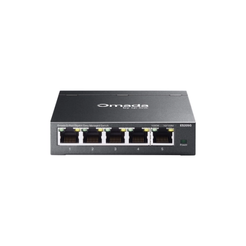 O Omada ES205G é um switch easy managed desenvolvido para ambientes que precisam de conectividade Gigabit, instalação simples e gerenciamento centralizado em nuvem. O modelo oferece 5 portas RJ45 10/100/1000 Mbps, suporte a plug and play, recursos como VLAN, IGMP Snooping, prevenção automática de loop, QoS e integração com o ecossistema Omada Central Essentials para monitoramento e administração remota. Com gabinete metálico, design fanless e instalação em mesa ou parede, é uma solução prática, silenciosa e eficiente para pequenas empresas e redes de vigilância.